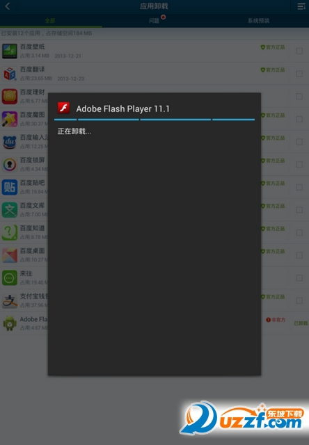 点击确定按钮后,就开始卸载我们选择的软件了,如下图所示
