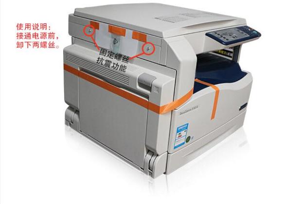 使用打印机前机器上有两个螺丝需拧开,这两个螺丝是固定扫描灯架防止运输过程中损坏灯架的哦,要卸下螺丝才能正常复印和扫描哦,请看以下图片哦