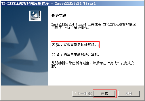 提示 维护完成,选择 是,立即重新启动计算机,并点击 完成,如下图: