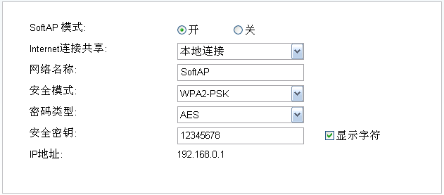 启用SoftAP模式后,默认无线SSID为SoftAP,密码为12345678,如下图: