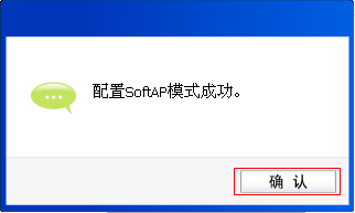 3、提示 配置SoftAP模式成功,点击 确认,如下图: