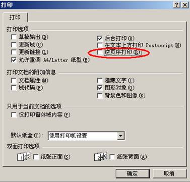 答:Word有自带的打印设置,且优先级高于打印驱动设置,如果Word的打印设置内选择了[逆序打印],那么无论打印驱动内如何设置,打印品终将以反序打印。