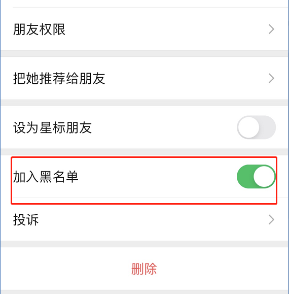 第六步:点击【加入黑名单】选项【关闭】,即可解除黑名单;