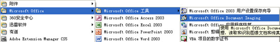 启动菜单:开始→程序→Microsoft Office→Microsoft Office 工具→Microsoft Office Document Imaging。Office XP/ 2003/2007有此程序。