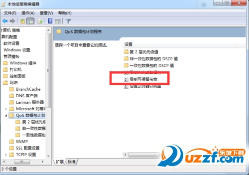 进入QOS数据包计划和,我们可以看到右边有一个限制保护宽带。