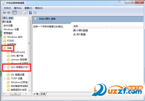 打开管理模板后,点击下方的网络选项,然后点击QOS数据包计划,打开。