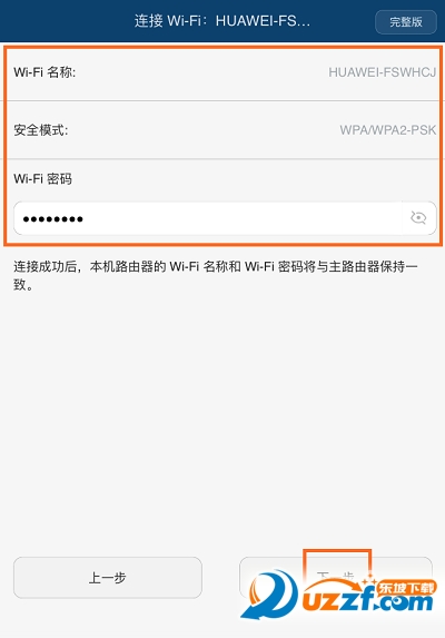 4、输入原路由器的无线网络密码——>点击“下一步”。