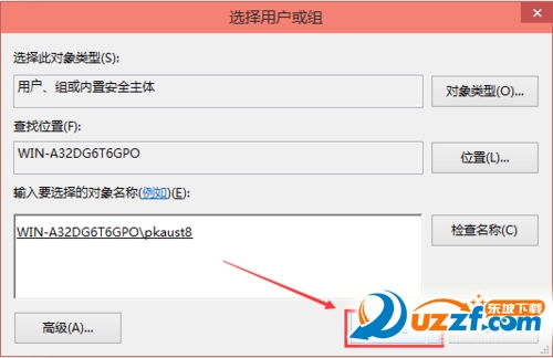 点击进入选择用户或组界面,点击高级,如下图所示。