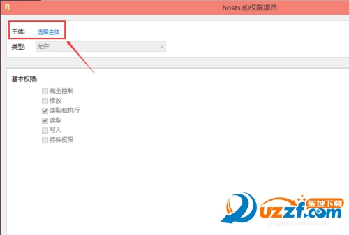 点击hosts的权限项目窗口下面的主体的“选择主体”,如下图所示。