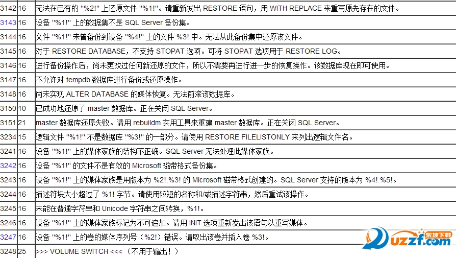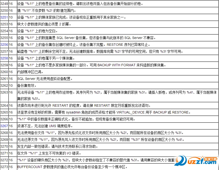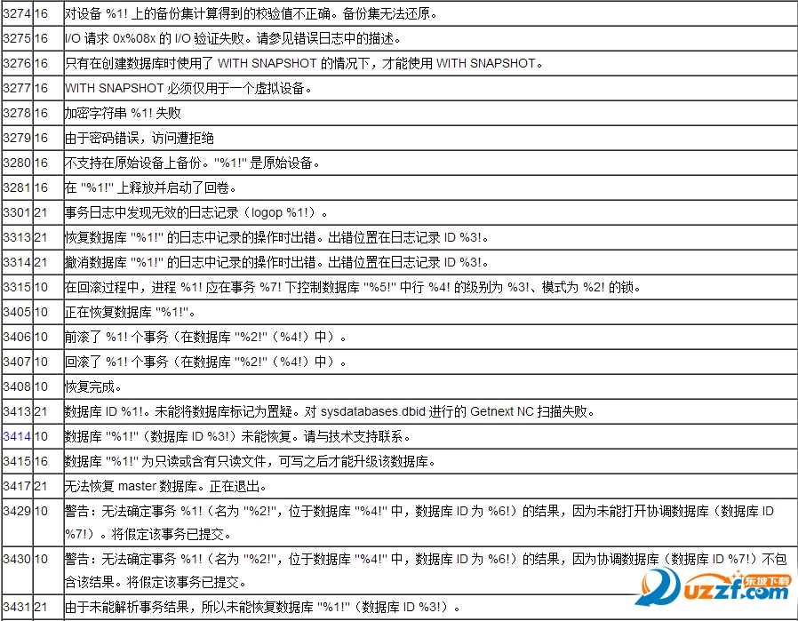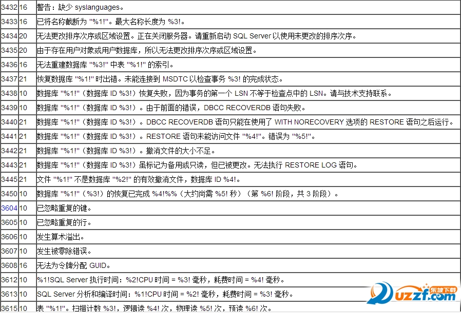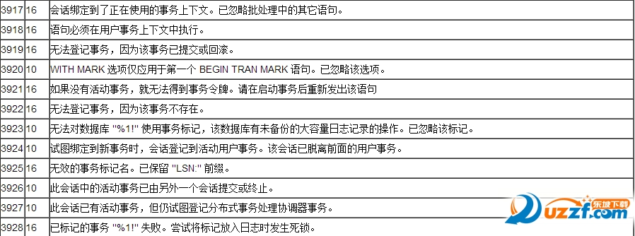 大家在使用SQL Server的过程中,都会碰到不少的问题,而那些问题都是以错误代码显示出来的。当你想要知道错误代码的意思话,来到东坡下载,就能够查看到最全的SQL SERVER错误代码!