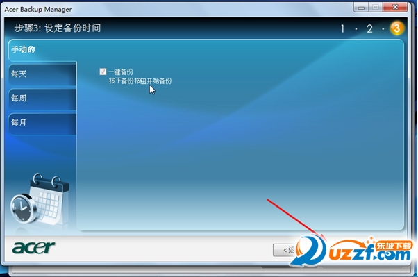 1,手动:直接点击保存即可,手动备份是通过按Acer Backup Manager按钮即可以开始备份,其中的"一键备份"的勾时无法去掉的(每周,每天,每月,的"一键备份勾是可以去掉的")
