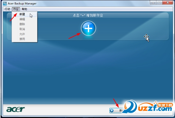 步骤一:点击创建新作业(创建新的备份方法),第一次运行创建新的备份有3种方法