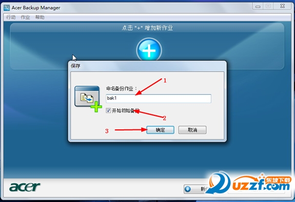 选择完成后输入此次作业名称(1),如果需要马上开始备份勾选"开始初始备份"(2),然后点击"确定"(3)。