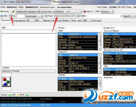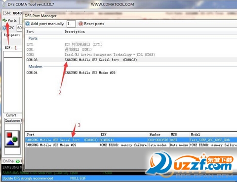 3,PC上打开DFS,选择三星DIAG端口,并连接