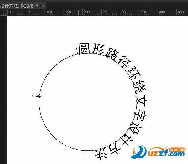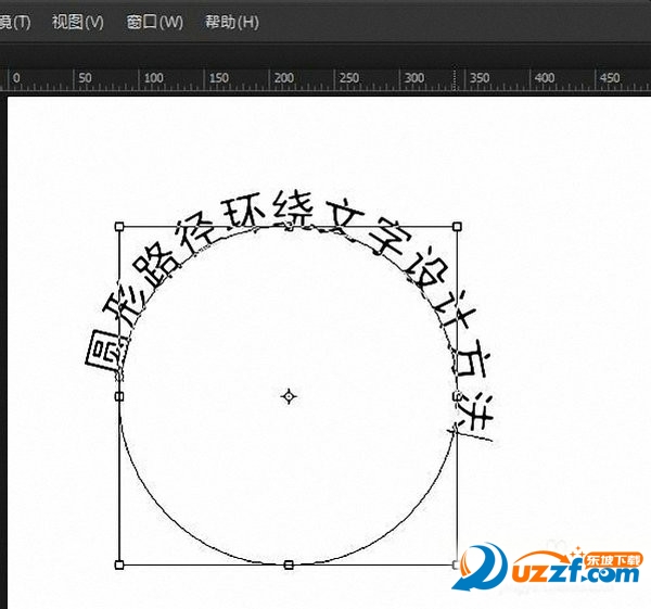 3、选择文字工具,鼠标指针放到路径上,当指针变成曲线的时候,点击路径输入文字,这样文字就会沿着圆形路径方向环绕。