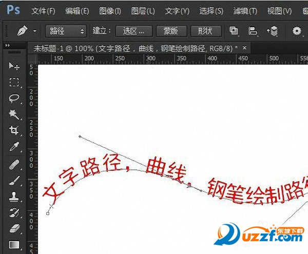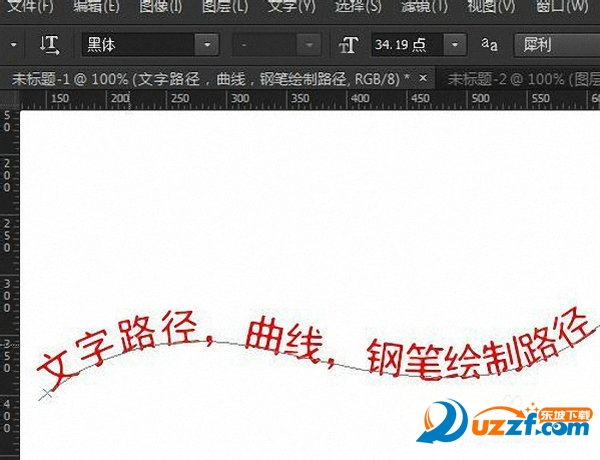 1、创建曲线或弧线文字和圆形文字道理一样,只是使用的是钢笔绘制的路径。
