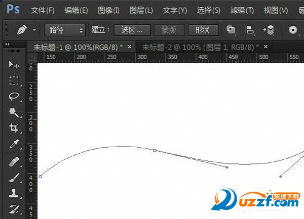 2、选择钢笔工具,选择绘制路径,绘制一个曲线路径