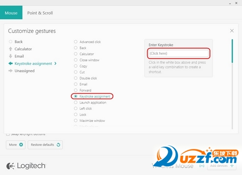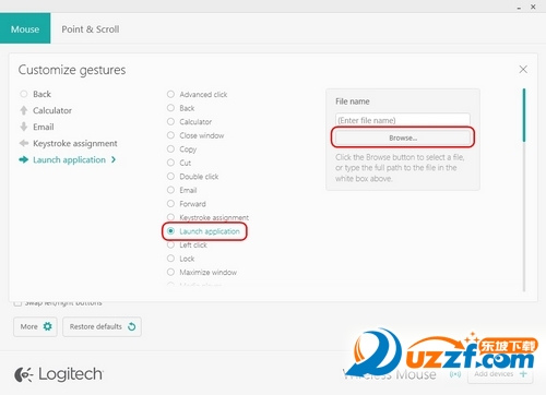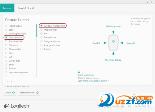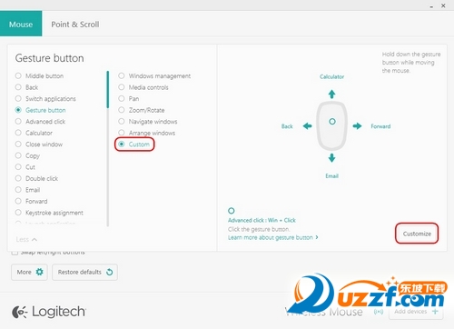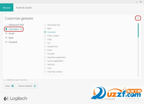 可以使用 Logitech Options 来自定义 M170/M171/B170 鼠标的四个手势所分别触发的操作。