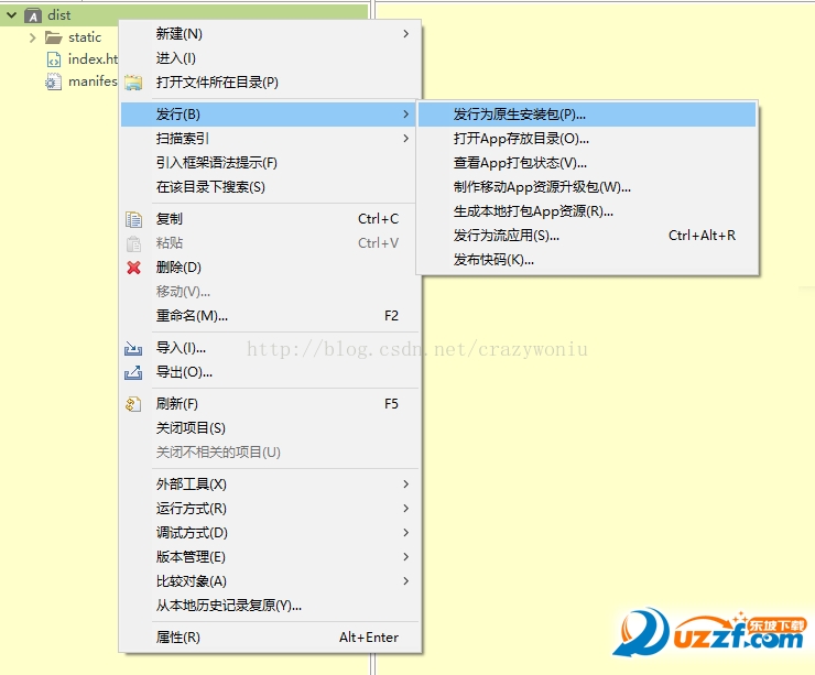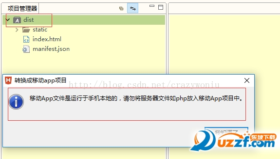 第六步,打开HBuilder开始打包为apk。文件-》打开目录,选择刚刚项目的dist目录,项目名称随便,这里就为dist