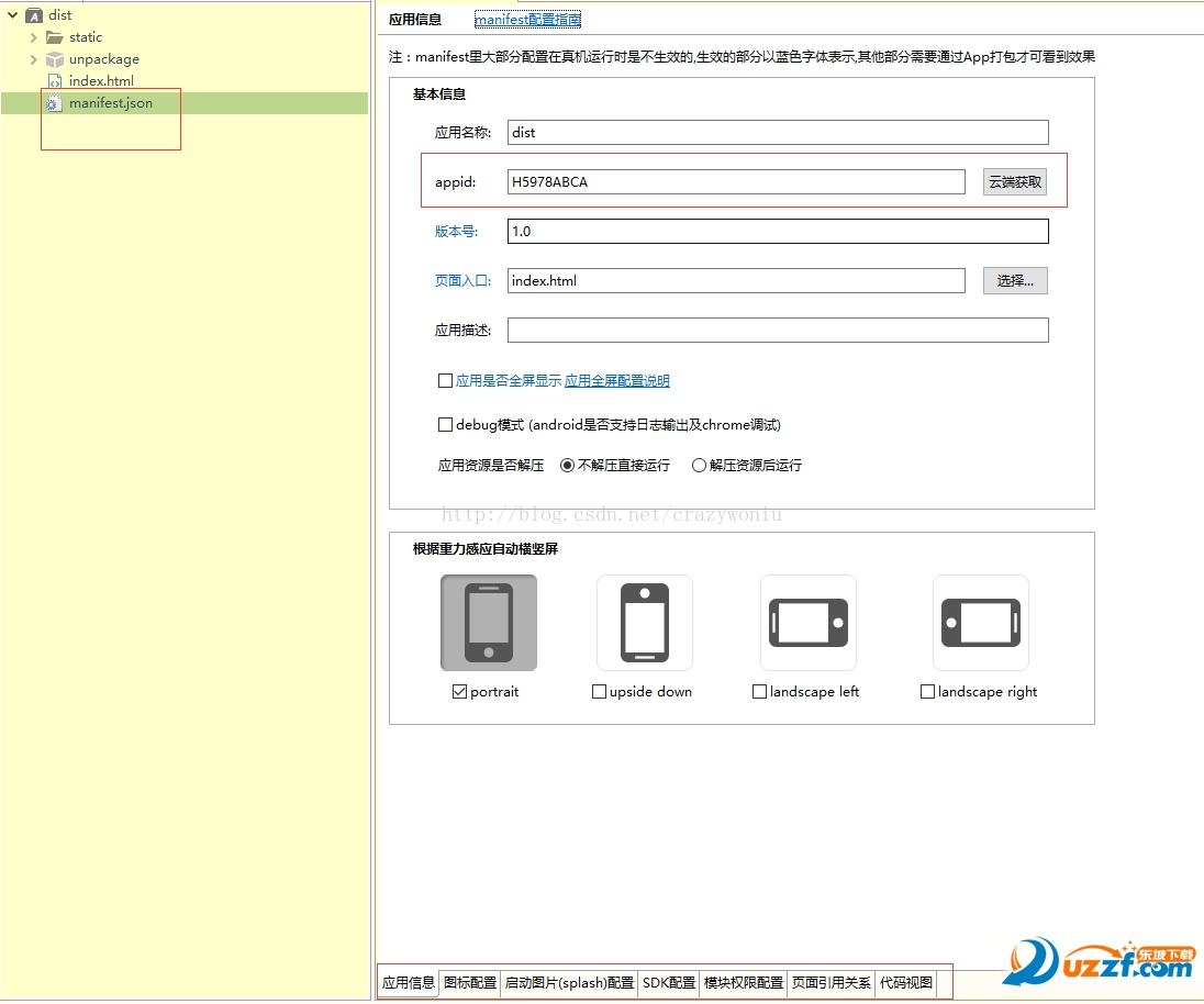 当项目的图片上显示为a时就可以了。接下来就是设置启动的图标等信息了,直接点击json的文件就会有设置界面