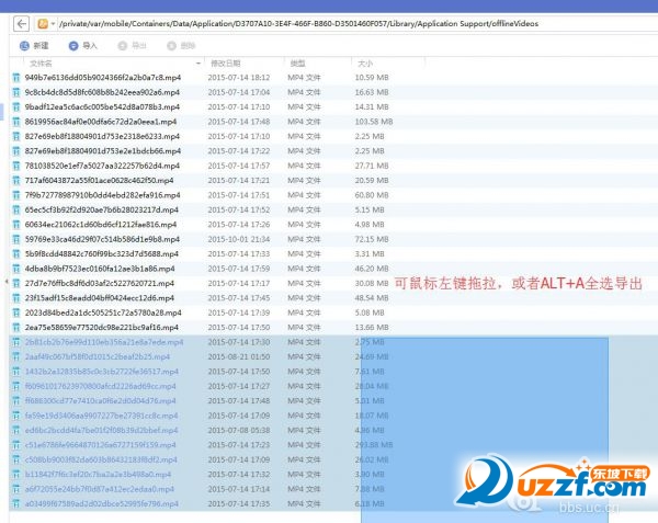 直接进文件夹目录,这个手机的文件目录 /private/var/mobile/Containers/Data/Application/D3707A10-3E4F-466F-B860-D3501460F057/Library/Application Support/offlineVideos D3707A10-3E4F-466F-B860-D3501460F057 这个目录可能每台手机不同请注意!