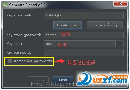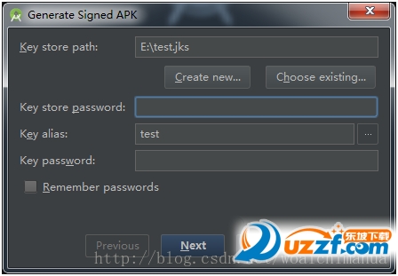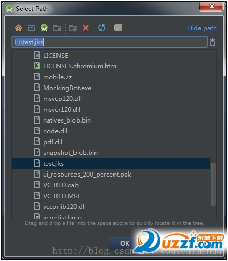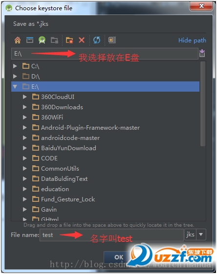 我的jks文件是放在E盘,叫test.jks 点击OK