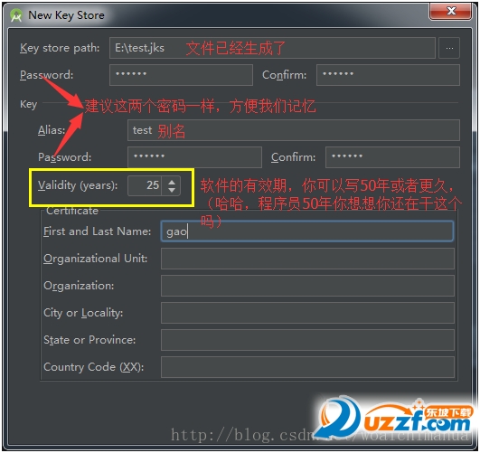 简单点说就是给你的apk发身份证,上户口,防止和你长的一样的人,假冒你。这里的apk身份证就是我们的“.jks”文件。所以这个jks文件很重要。