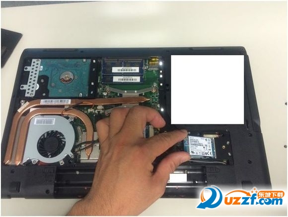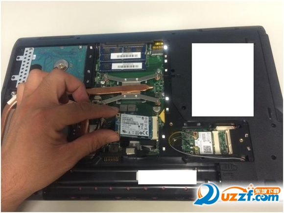 4. 将固态盘以约45度的角度斜插到MSATA的接口,