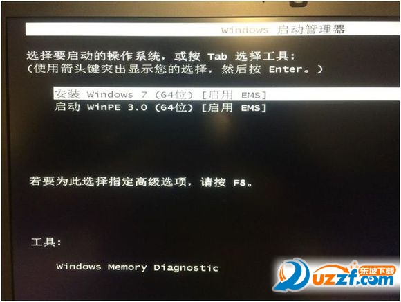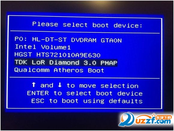 6. 系统开机时一直按压F11键会出现快速开机选单,利用上/下键选择U盘后,