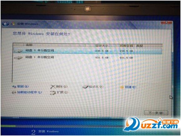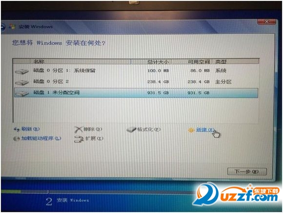 (如果只有安装一颗硬盘,新建之后一样选择分区2的位置进行安装)