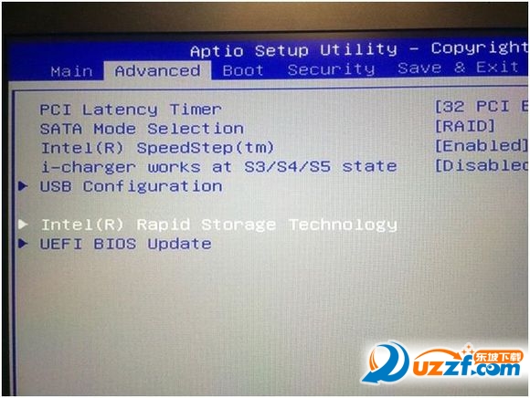 再往下移至Intel Rapid Storage Technology 后按下回车