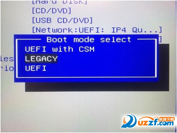 3.利用上/下键移动到LEGACY模式后按下回车