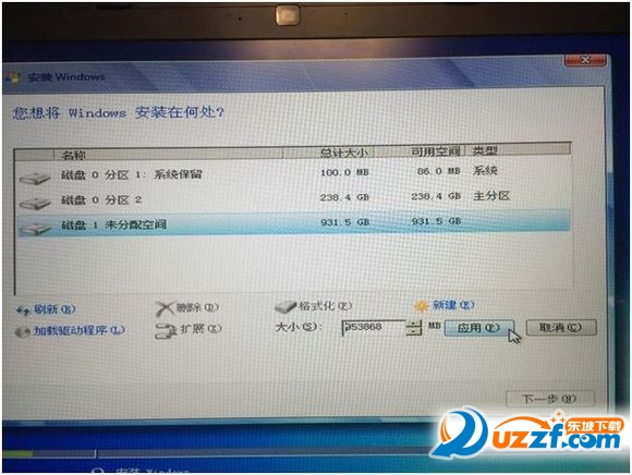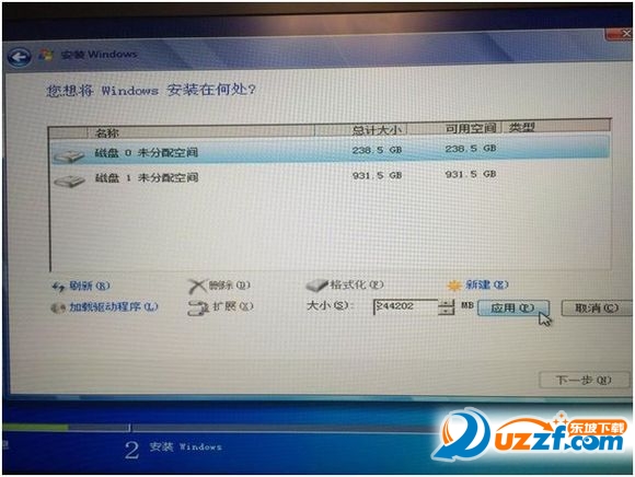 12. 选择磁盘 0 后,按下新建