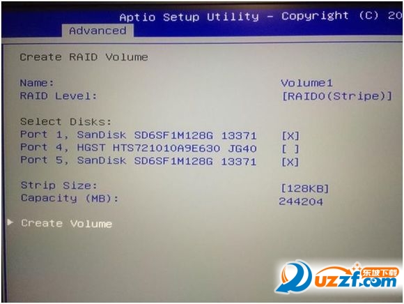再移到Stripsize按下回车并选择到128KB