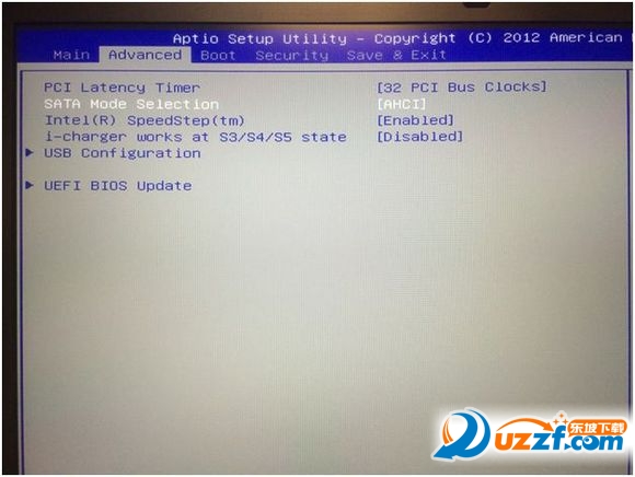 10. 利用左/右键移到Advanced,再利用上/下键,移至SATA Mode Selection 后按下回车