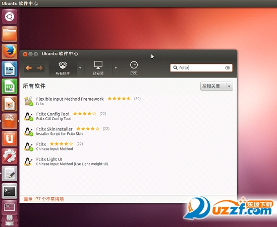 4. 打开Ubuntu软件中心,在搜索栏输入fcitx,将会搜出fcitx,然后按照一般软件安装步骤安装即可完成升级。