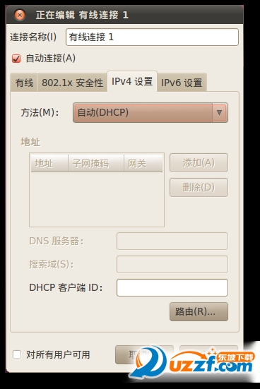 如果您的互联网提供商使用 DHCP(动态主机连接协议),但您需要额外的 DNS 服务,那么只需在 IPv4 设置 的 方法 下拉列表中选择 自动配置(DHCP)仅地址,然后在 DNS 服务器 一栏中依次输入服务器的地址,多个地址之间用逗号分隔。