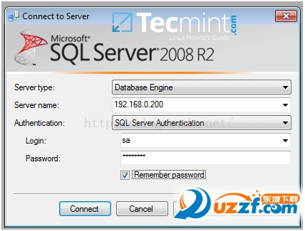一旦完成,输入数据库服务器的IP(在这个用例中192.168.0.200)和登录凭据(用户名= sa,密码=YourPasswordHere):