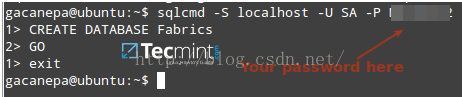 $ sqlcmd -S localhost -U SA -P 'YourPasswordHere'