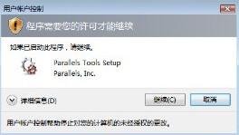 选择在Windows 7与Windows Vista中安装 Parallels Tools之后,用户访问控件 (UAC) 会提示“是否允许或拒绝安装 Parallels Tools”,需要选择“继续”。