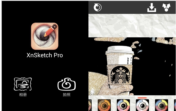 下载并安装后,打开软件。打开软件后,用户可以在相册中选择或者拍照。在素描滤镜中添加了照片后,在底部选择“魔法棒”的按钮,用户就可以选择不同的素描滤镜效果。