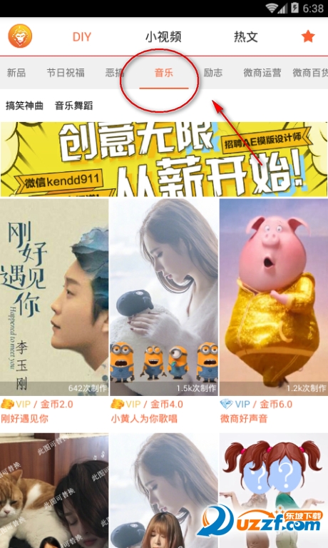 4、如果你是一个爱音乐的人,你可以点击音乐进行音乐视频制作