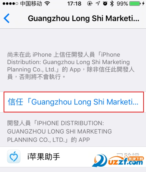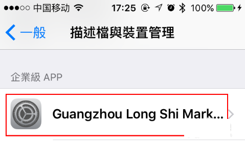 1、首先记住App需要选择信任的描述文件名,如图中划红线部分。