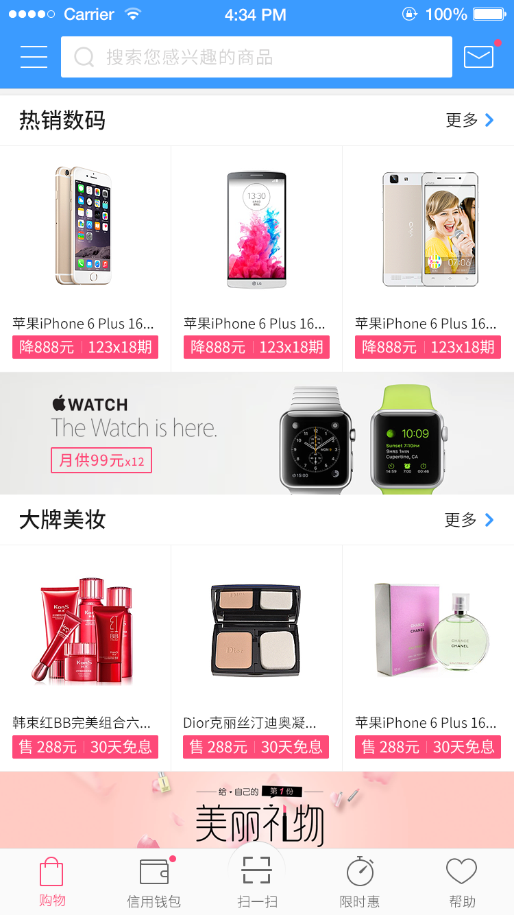 第一步:您可以通过手机版分期乐官网或下载官方App浏览或搜索关键词寻找商品,您也可以通过“限时惠”购买限量底价商品。