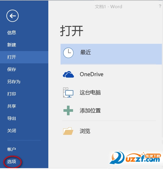 以Word 2016为例,打开Word编辑界面,点击“文件”菜单,然后选择“选项”命令。