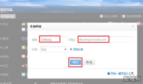 在打开的“添加网址”窗口中,输入名称和网址,然后点击“确定”按钮。