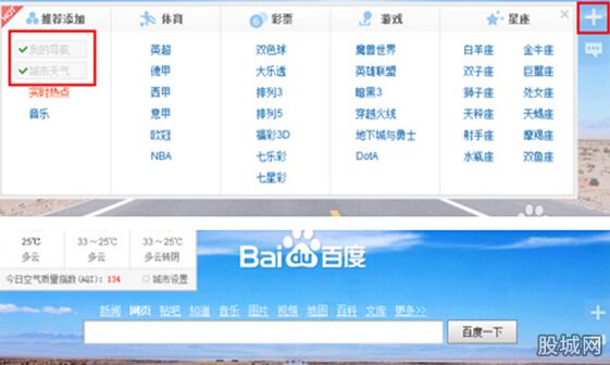 添加导航网站的方法:点击百度首页右侧的“添加”按钮。然后在打开的窗口中点击“我的导航”和“城市天气”两项内容,则这两项内容被添加到当前百度首页当中。如果此时发现导航栏部分消失了,则通过点击百度网页窗口右上角的“新版首页”按钮将页面切换至新版。