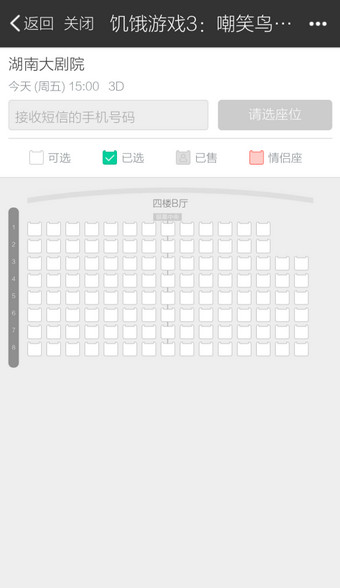 6.以《饥饿游戏》为例进入,选择一家电影院