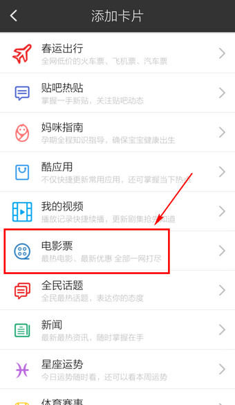 3.点击【添加电影票卡片】