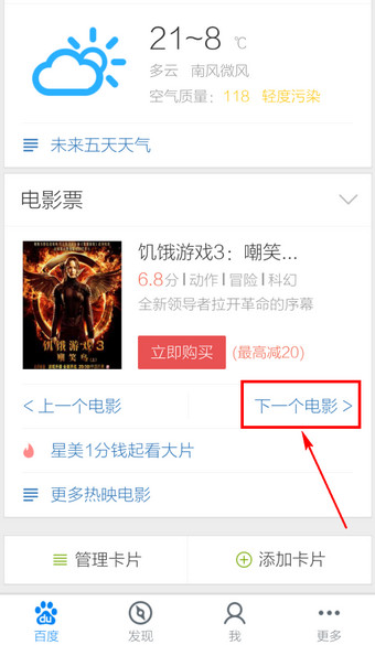 5.点击【下一个电影】可切换热映电影信息